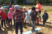 А сегодня резвились и играли дети старшего дошкольного возраста. В зале прошла познавательная часть праздника, а на улице все вместе побывали на детском Сабантуе, где ребяки в конце конкурсов получили призы.