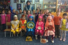 Воспитатель по обучению татарского языка Мустафина Г.Б. с маленькими артистами подготовительной к школе группы представила к вниманию каждой возрастной группы сказку на татарском языке "Өч кыз", которая входит в учебно-методический комплект по изучению татарского языка.