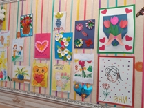 В детском саду проходит выставка детских работ, посвященных Международному женскому дню 8 марта. Выставка очень яркая, красочная и оригинальная. Всем большое спасибо!!!