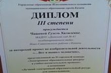 Поздравляем воспитателя высшей квалификационной категории, Чашеву Гузель Халилевну, с призовым 3 местом в городском конкурсе «Электронные образовательные ресурсы в учебно- воспитательном процессе»))) Ура))) МОЛОДЕЦ)) 12.04.2019