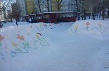 Красивый участок 5 группы!! Мы рисуем на снегу солнце, ветер и луну, бесконечный горизонт, золотой зари восход. 15.02.2018