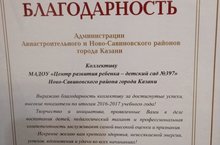 По результатам работы за 2016-2017 учебный год наш детский сад занял – 2 место в рейтинге среди дошкольных учреждений Авиастроительного и Ново - Савиновского районов и 9 место в рейтинге среди 332 дошкольных учреждений города Казани.