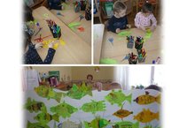 В рамках тематической недели «Кто в море живет, что по морю плывет?» дети старшей группы № 5 создали коллективную панораму « Море и его обитатели» в технике аппликации и рисования.