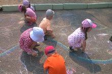 У нас прошел смотр-конкурс рисунков на асфальте «Мы рисуем лето!». Разноцветными мелками маленькие художники рисовали лето. Получилась удивительно солнечная картина: цветы, небо, луга, море и дети!