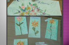 Вот какие красивые открытки для мам сделали дети старшей группы № 9. А еще совместно с Ириной Геннадьевной коллективно подготовили поздравительную газету, которая очень понравилась мамам. -