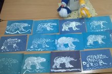 Всю неделю дети средней группы № 10 будут изучать тему "Животные Севера и Африки", в ходе которой познакомятся с разнообразным миром Антарктиды и саванны. Сегодня дети попробовали себя в качестве художников, изобразив белого медведя при помощи ватной палочки и белой гуаши.