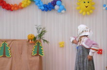 Сегодня педагоги детского сада показали для ребят младшего и среднего дошкольного возраста сказку «Приключения Колобка».