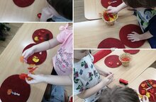 Ребята второй младшей группы № 2 учатся работать с шерстью и выкладывать картин из шерсти.
