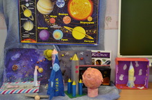 На многие интересующие детей вопросы пришлось искать ответы не только воспитателям, но и родителям. Ребята познакомились со строением солнечной системы, узнали названия планет и космических тел, фамилию первого космонавта и название его космического корабля, за "круглым столом" искали ответ на вопрос "Есть ли жизнь на Марсе?", лепили из пластилина фантастических марсиан, делали коллажи "Звездное небо", строили из объемного и плоскостного конструктора космические ракеты.