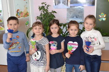 Вчера прошел весенний утренник у ребят подготовительной к школе группы № 7. Одним из сюрпризов на утреннике был подарок для мам - букеты цветов, сделанные своими руками.