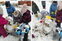 Чем можно заняться на улице, если наконец-то выпал первый снег? Конечно же строительством снеговиков. Вот и ребята из старшей группы №11 построили несколько снеговиков.