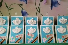 В преддверии празднования Дня Победы, в целях патриотического воспитания дошкольников, любви к своей Родине и уважения к людям, которые ковали Победу, ребята, посещающие кружок «Чудо-тесто», под руководством Рузили Наилевны сделали своими руками красивые открытки для ветеранов. Открытки получились торжественные, в них ребята вложили тепло своих рук и души.