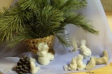 Ребята вальдорфской группы № 14 своими руками мастерили зайчиков из непряденой шерсти для настольного театра. Зайчик изготавливается по принципу узелковой куклы и передаёт самые общие черты животного- позу, характер. Это способствует развитию воображения детей. Как приятно сочинять зимнюю лесную сказку, когда в руках такой теплый и мягкий зайчик.