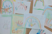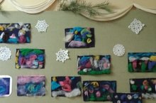 В вальдорфских группах дети знакомятся со свойствами натуральной пряденой шерсти. У нас получились замечательные яркие и очень теплые картины из шерсти. Шерсть позволяет рисовать картины также как и краска, можно много раз наслаивать цвета, и смотреть какая красота выходит от такого рисования… каждая картина индивидуальна и хороша по-своему!