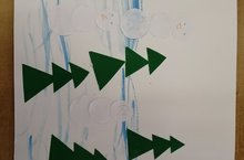 Ребята второй младшей группы № 3 сделали композицию "Зимний лес". Они учились видеть части ели в разных по величине бумажных треугольниках.