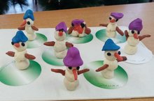 Ребята второй младшей группы №3 слепили из пластилина снеговиков. В ходе занятия закрепляли умение делить кусочек пластилина на части, катать шарики, и собирать все детали вместе.