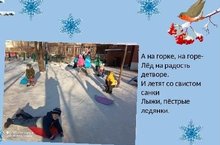 Очень любим зиму мы, много предстоит задач: птиц накормить, покататься с горки. И все делаем с удовольствием! -