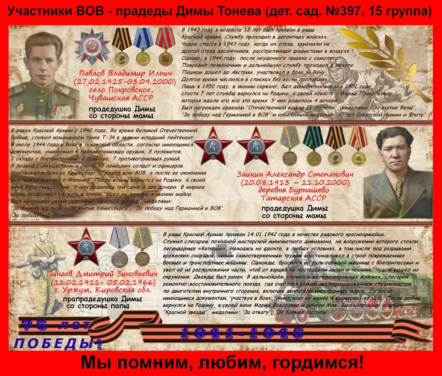 Про прадедушек Дмитрия Т. (из старшей группы№ 15) можно узнать из коллажа