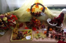 В подготовительной группе № 4 прошла выставка работ из природного материала по теме «Осень - Волшебница». Родители и ребята группы с огромным удовольствием приняли участие в выставке. Посмотрите, какие работы украсили группу.