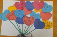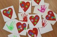 Ребятки первой младшей группы № 1 совместно с воспитателями Ольгой Викторовной, Риммой Равилевной и воспитателей по художественно-эстетическому циклу Натальей Федоровной приготовили сюрприз для мамочек. На 14 февраля они подарили мамам свое сердце и ладошку.
