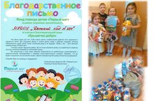 Ребята, родители и сотрудники нашего детского сада приняли участие в благотворительной акции «Крышечки добра». Собранные крышечки передали в БФ «Первый шаг». Вырученные в ходе акции средства направляются на реабилитацию детей-инвалидов с неврологическими заболеваниями и травмами опорно-двигательного аппарата.