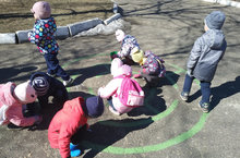 Ребята младшей группы № 10 группы в хорошую солнечную погоду рисовали мелками на асфальте цветы, солнце, голубое небо… -