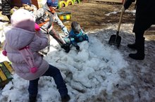 Вот и наступила настоящая весна…. Солнце светит, текут ручейки, снег почти растаял, птички поют. Ребята старшей группы N 8 с большой радостью готовят площадку для прогулки: подметают веранду, собирают мусор и очищают площадку от последнего снега. Весело работать дружно и сообща!
