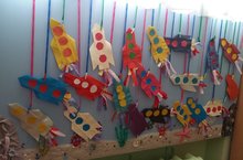 Предстоящая неделя посвящена изучению проекта "Космос". Педагоги и ребята младшей 10 группы "побывали" в открытом космическом пространстве. Для этого использовали обычный кусок темной ткани, превратив его в космическое небо, где дети самостоятельно расположили планеты, ракеты, летающие тарелки, инопланетян изготовленные совместно с родителями. -