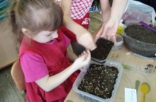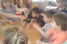 Перед посадкой дети с воспитателем провели опыт с землей и узнали, что в ней есть воздух, необходимый растениям. В ходе эксперимента дети выяснили, что при сжимании комочка земли из него "уходит" воздух.