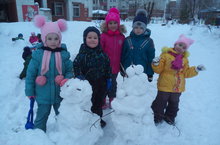 А на участке ребята старшей группы № 11 слепили снеговиков из последнего мартовского снежка!!!