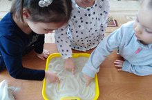 В рамках тематической недели "Где живёт черепаха" в младшей группе 7 прошла увлекательная образовательная деятельность. Малыши создавали простейшие рисунки, рисуя пальчиком на песке.