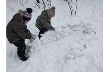 Чем можно заняться на улице, если вокруг много снега? Конечно же, строительством. Вот наши мальчики из средней группы № 1 и построили себе крепость из снежных камней....