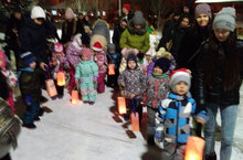Мы зажгли фонарики, которые дети сделали своими руками из живописной промасленной бумаги, и вокруг стало чуточку светлее.
