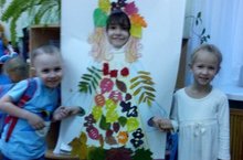 Вот такая красавица Осень пришла к детям старшей группы № 4. Тантамареску «Осень» ребята сделали сами. Платье и веночек Осени украсили листочками, вырезанными из цветной бумаги, и рябинками из салфеток, подол и рукава украсили листьями, которые собрали на прогулке. А вечером мы устроили фотосессию. Полюбуйтесь, какая прекрасная Осень получилась.