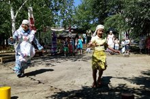 Мы играли в любимые музыкально-подвижные игры, пели татарские народные песни, проводили традиционные соревнования: бег в мешках и с яйцом в ложке, били палкой по ведру с завязанными глазами и перетягивали канат. Играли очень дружно и, конечно, победила дружба!