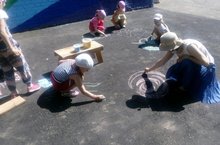 В вальдорфских группах "Рябинка" и " Пчёлки" в понедельник прошёл "творческий час" рисования на асфальте.