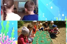 Дети старшей группы № 3 изучали растительный и животный мир морей, смотрели фильмы, а затем сделали прекрасную картину подводного царства из песка и камушков!!!