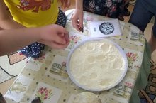 Педагоги и дети подготовительной к школе группы № 10 решили смоделировать образование кратеров. Достали поднос и высыпали на него ровным слоем манную крупу. Так у нас получилась лунная поверхность. Взяли мячики-прыгуны, камни (и представили что это метеориты, падающие на луну) и стали бросать их "на луну". А потом с интересом рассматривали получившиеся кратеры. -