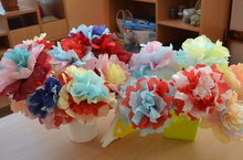 В преддверии праздника 8 марта, дети подготовительной к школе группы № 7 вместе с воспитателем Гузель Ирековной сделали изящные и оригинальные цветы из обычных бумажных салфеток. -