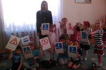 Дети старшей группы № 15 вместе с лейтенантом полиции Валиевой Алией Зиннатулловной (которая является мамой воспитанника данной группы - Раниля) поговорили о безопасном поведении на дорогах, правилах движения пешеходов по тротуару. А в подарок детям Алия Зиннатулловна раздала световозвращающие элементы, которые так необходимы в темное время суток!!!