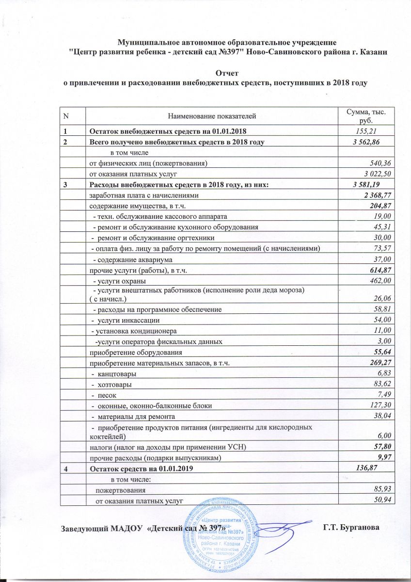 Отчёт о привлечении и расходовании внебюджетных средств за 2018 год