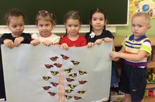 Во второй младшей группе N6 был осуществлен краткосрочный информационно-творческий проект «Птицы-наши друзья». Целью этого проекта являлось знакомство детей с образом жизни и поведением птиц; воспитание сопереживания и сочувствия, желания помочь птицам в трудных зимних условиях. Данный проект включал в себя: -беседы о пернатых друзьях; -наблюдения за ними на прогулках; -рассматривание иллюстраций о птицах; -проведение подвижных игр; -чтение художественной литературы о птицах; -проведение дидактических игр о пернатых; -закрашивание силуэтов птиц; -лепка фигурок птиц; -подкармливание птиц во время прогулок. Итогом данного проекта стала коллективная аппликация под названием «Птички на веточке». В работе использовались такие нетрадиционный материал, как манная крупа и ватные диски. Дети получили большое удовольствие и радость от работы в коллективе. -