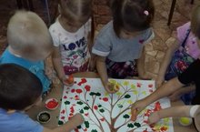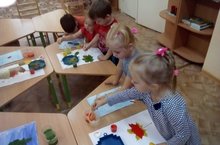 В младшей группе прошел краткосрочный проект на тему: «Осень на опушке краски разводила». Целью этого проекта послужило: развитие нравственно-эстетического воспитания детей через художественную деятельность, где дети знакомились с новой техникой рисования – «печать осенними листьями», учились создавать композицию с помощью техники печати, а также в процессе творческой деятельности в группе формировалась дружеская атмосфера.