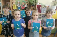 Педагоги вместе с детьми читали стихи о подснежниках, разгадывали загадки, используя нетрадиционные техники изобразительной деятельности - "Ниткография", "Пластинография", "Пенная монотипия") оформили открытки.