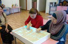 Педагог-пихолог Ерунова Наталья Викторовна провела с родителями мастер-класс по песочной терапии.