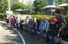 Сегодня с детьми старшей группы было проведено практическое занятие по ПДД на улице с использованием дорожной разметки.