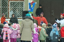 В детском саду прошли масляничные гуляния: игры, песни, шутки, танцы, катание на лошадке.