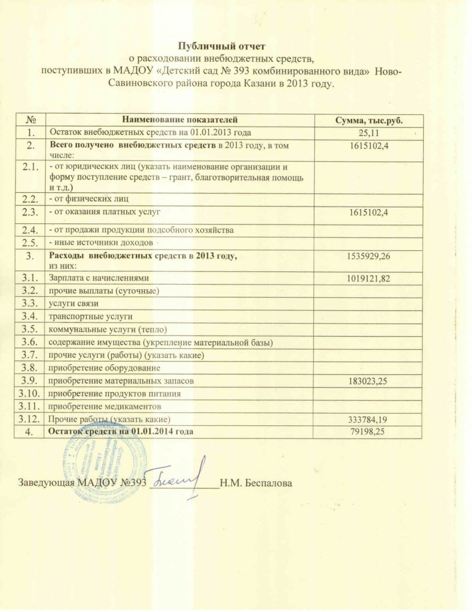 Отчет о привлечении и расходовании внебюджетных средств за 2013 год
