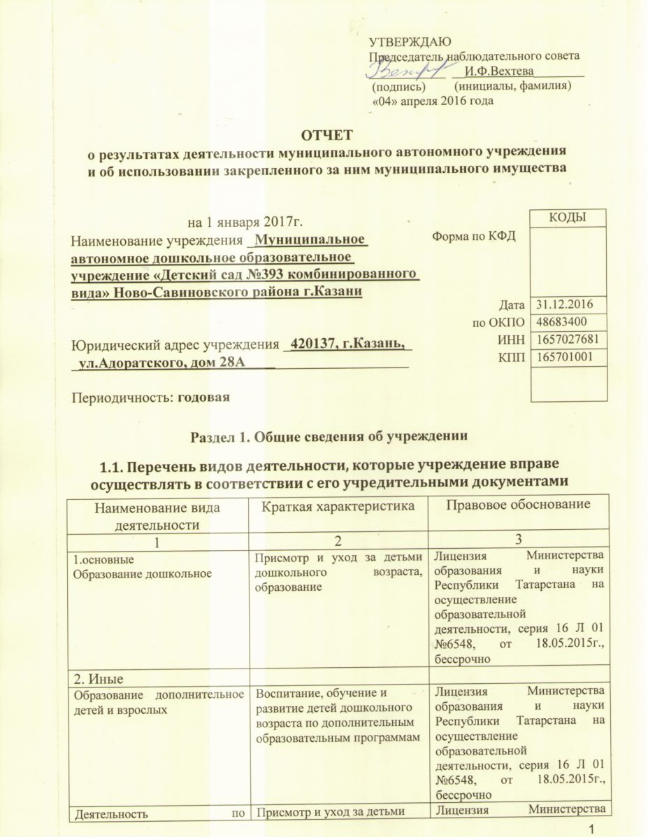 Отчет о результатах деятельности МАДОУ и об использовании закрепленного за ним муниципального имущества за 2016г.