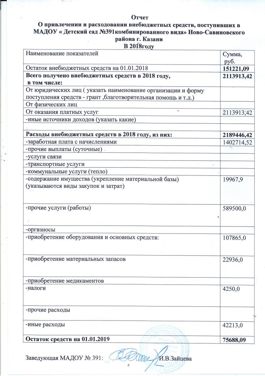 Отчет о привлечении и расходованиии внебюджетных средств за 2018 год